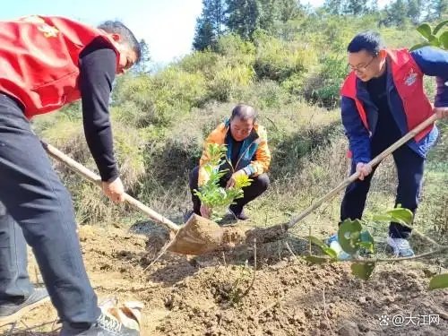 在線下,3月12日,江西省郵政分公司直屬機關黨委、團委聯合開展“厚植綠色底蘊 傳承紅色精神”活動。150名機關黨員、團員青年分工協作,揮鍬鏟土、培土圍堰、提水澆灌,相繼種下橘子、桃樹、石榴等70余株苗木。迎風挺立的新苗,為初春的南昌增添了濃濃生機。與此同時,各市、縣郵政分公司也同步掀起義務植樹熱潮。據統計,2026年全省郵政累計開展線下植樹活動76場,2139人次投身其中,共栽種樹苗4410株。