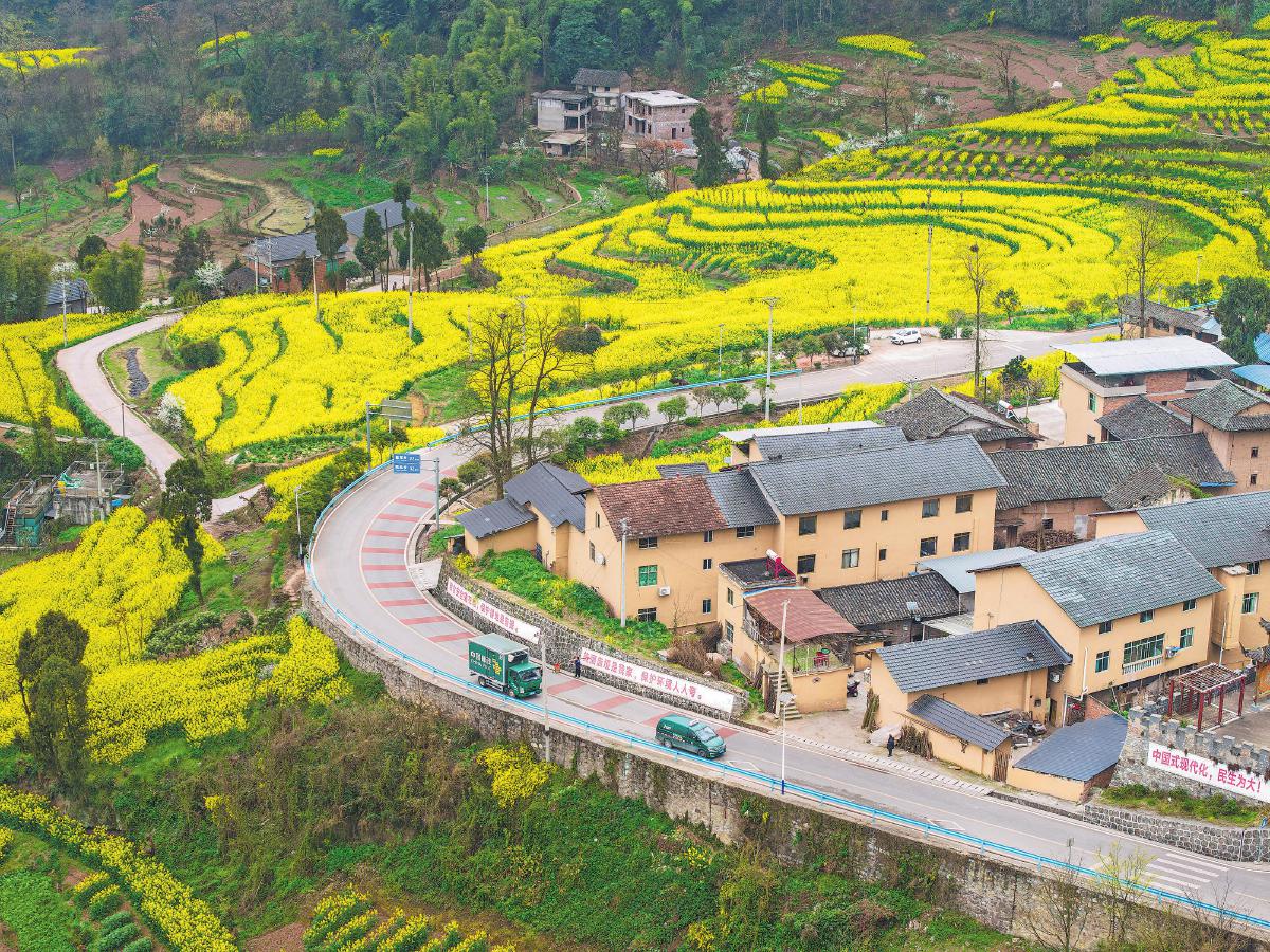 3月13日,巴渝梯田鋪金浪,郵車穿行其間,將春耕物資送往武隆區(qū)廟埡鄉(xiāng),為農(nóng)戶穩(wěn)產(chǎn)增收注入郵政力量。 □王金莊 攝